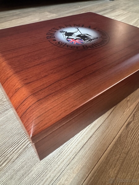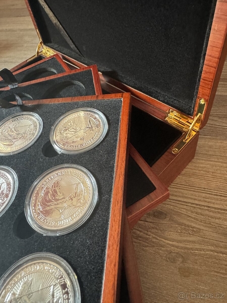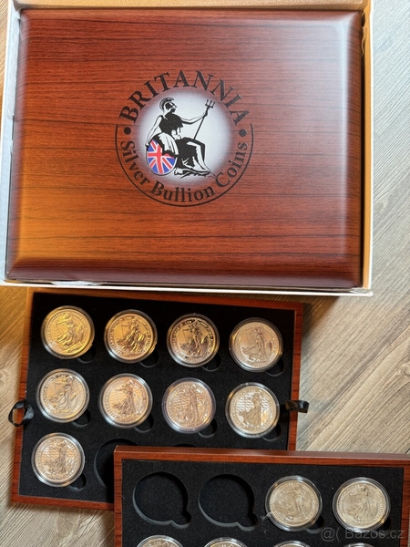 Etue obsahuje dvě stříbrné mince Britannia v kapsli