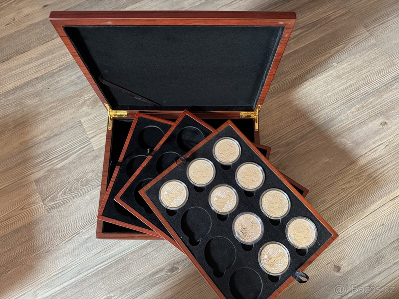 Etue obsahuje tři plata pro 12x 1oz, uložíte tedy až 36 mincí