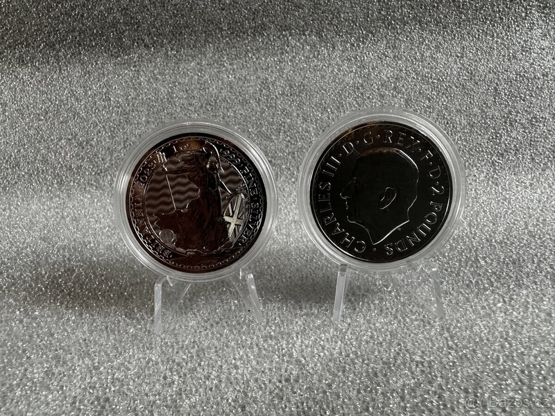 1oz stříbrná mince Britannia 2023 král Charles uložena v kapsli - provedení standart